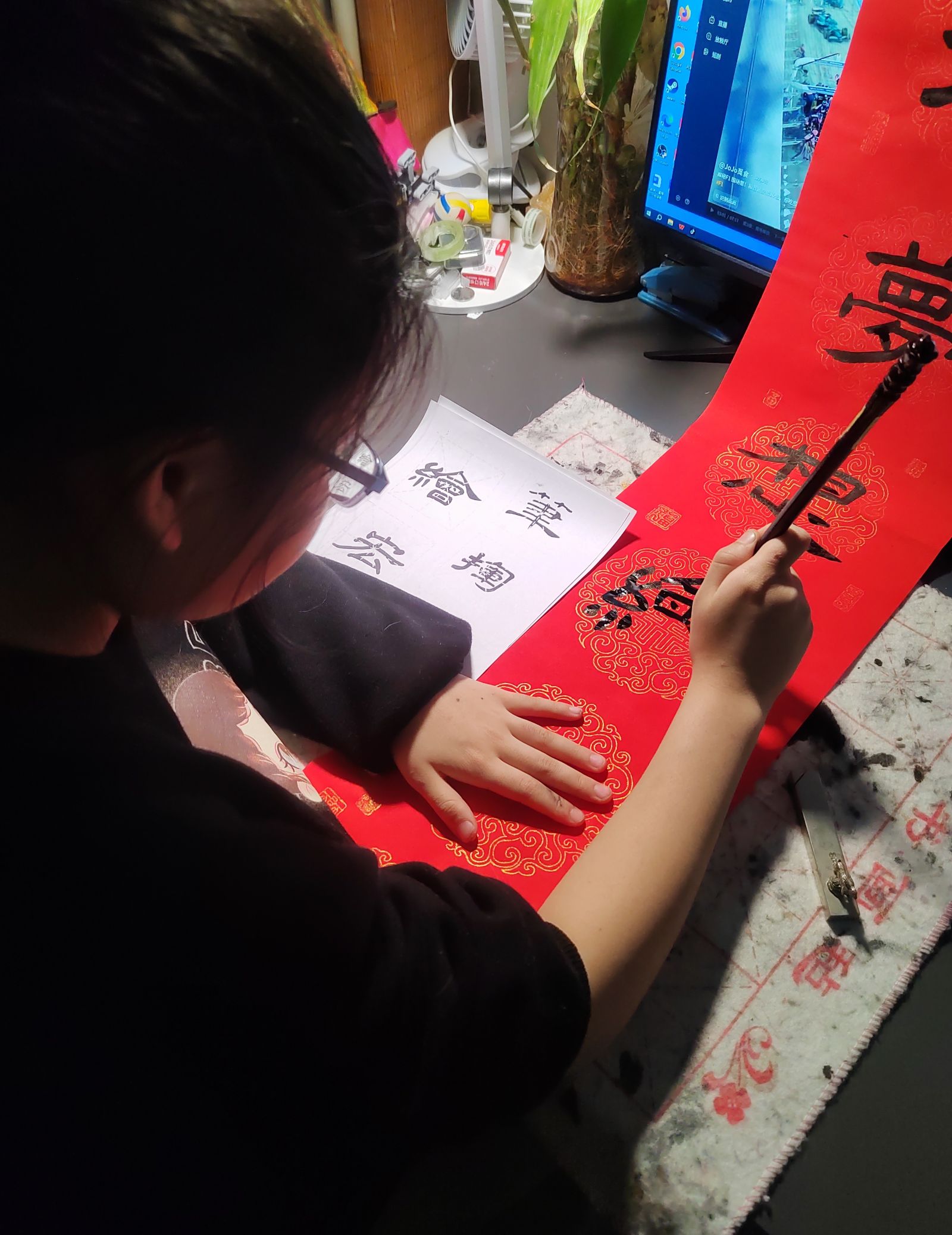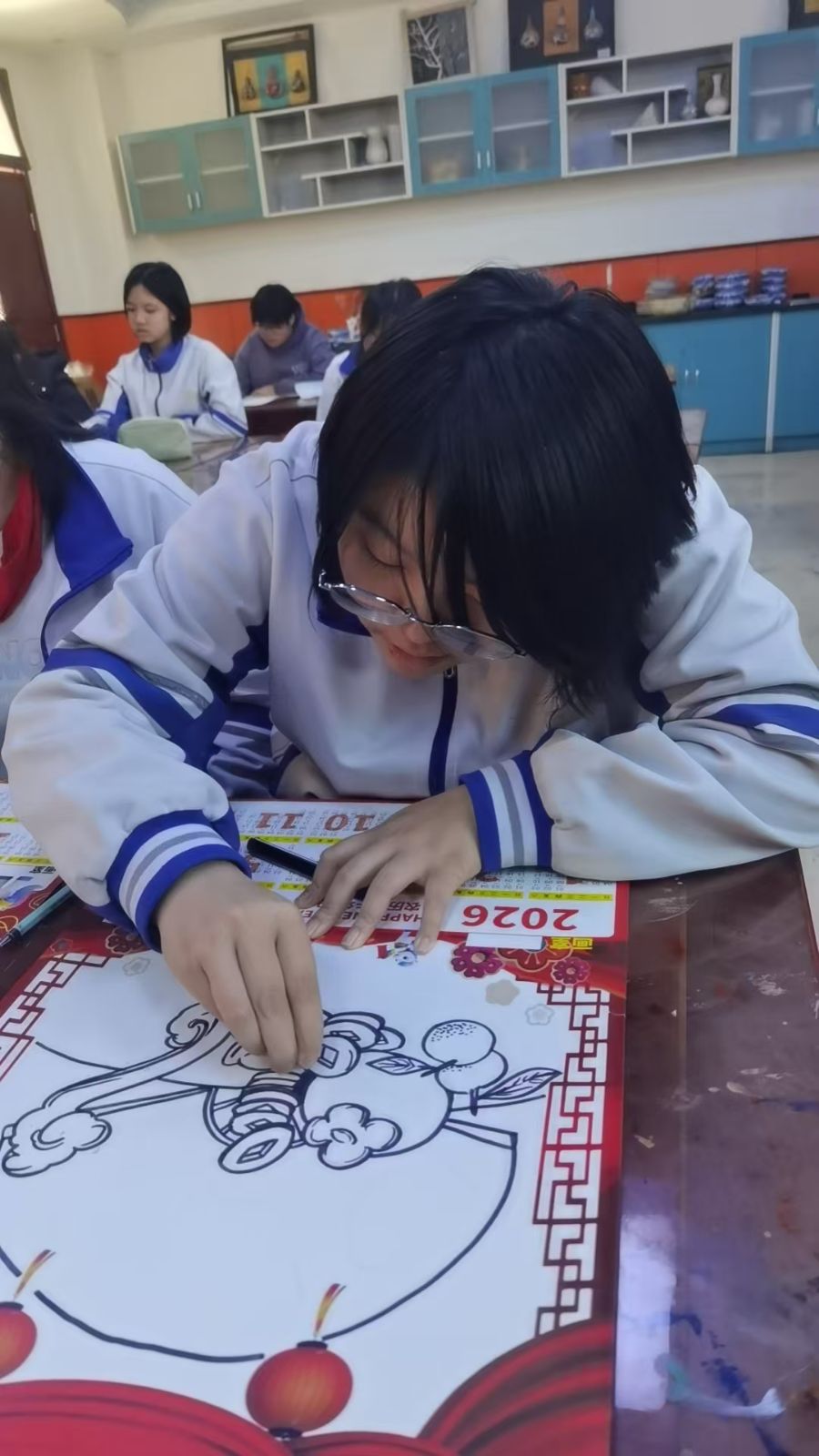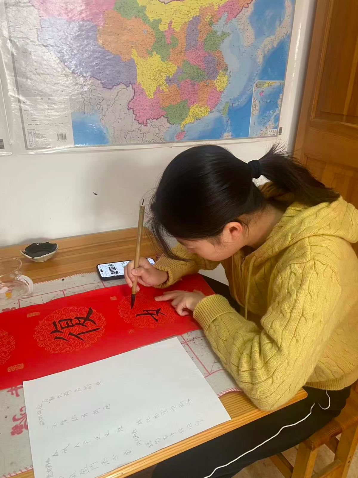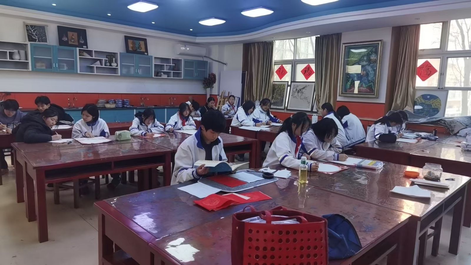 从12月20日开始,各班已陆续确定创作人员、碰撞创作思路、准备书写工具。12月26日,同学们将挥毫泼墨,把心意写在红色宣纸上,完成三副优质春联的创作与提交。