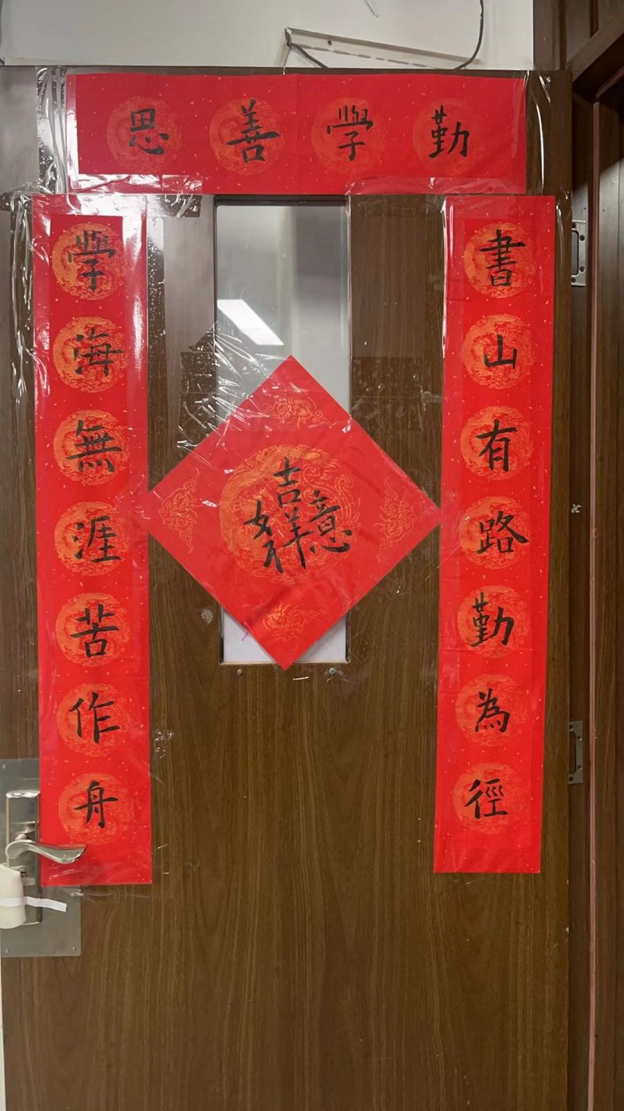 班级互赠:各班将春联作为新年礼物,与兄弟班级互换,让友好情谊在笔墨间传递;同时,春联将张贴在教室门口、黑板报两侧,让教室秒变“新年打卡地”,氛围感拉满。