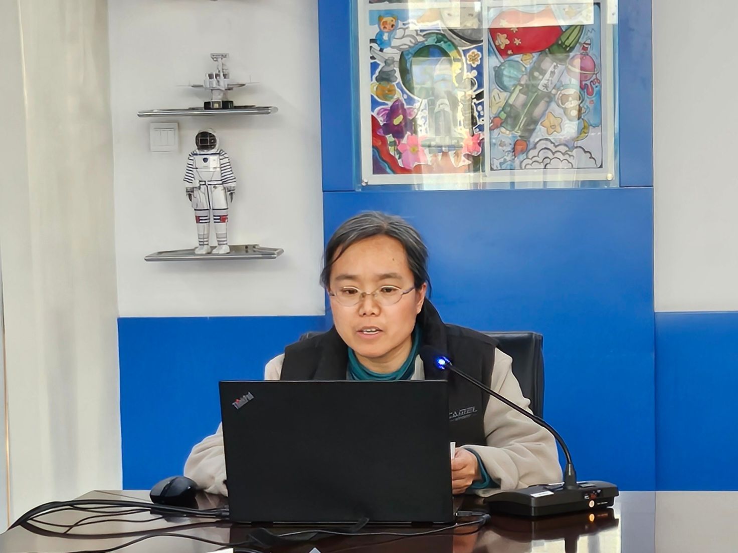 各教研组长发言结束,杨靖校长做指导讲话,首先她高度评价了6位教研组长的总结分享,每一个发言的背后都是教研组长专业引领和全组教师们的精诚合作与付出。尤其是有的教研组长身兼多职,但仍出色完成教研发展工作,值得敬佩。同时杨校在教研组建设上也给出了建设性的建议和指导,建议每个教研组结合校情关注四方面:一是关联学科课程与大思政的育人目标;二是将 “问天” 航天特色融入日常教学;三是探索智慧学习与人工智能在教学中的适度应用;四是以教研组为核心,围绕集团提出的 “灵境课程” 理念,以沉浸式体验与人际交互为方向推进课程创新,期待各教研组在新学期聚焦关键问题,共同提升学校育人质量。