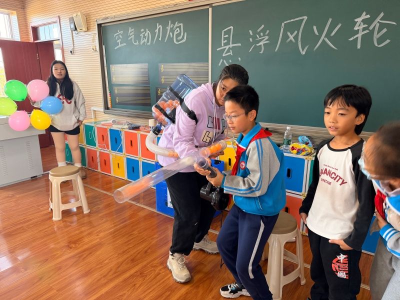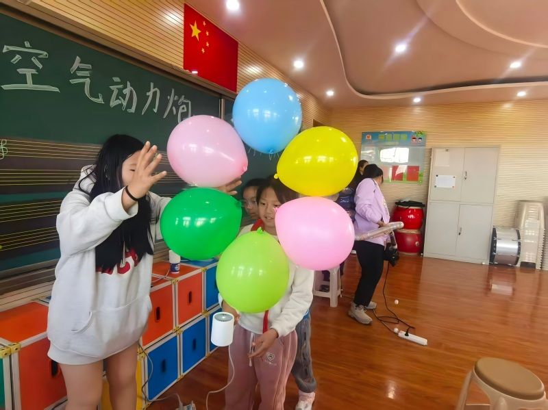 在开幕仪式上,三年级1班的孙达同学还利用伯努利原理为大家展示了气球飞轮,并联系生活实际讲解了其中的科学知识,鼓励更多的同学们积极参与到科技探索和实践体验中来,学习科学知识,探索科技奥秘,感受科技创新生活的无限魅力。