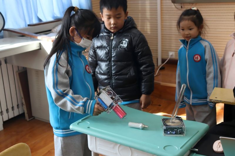 开幕仪式后,便开始了孩子们非常喜欢的特色科技体验活动,学生以小组为单位,奔赴各个活动场地,开启快乐的科技体验,涵盖了室内外共12个科技项目。在老师的指导之下,同学们动手操作、大胆尝试,相互协作、分享发现,在轻松有趣的氛围中感受科技的魅力,培养创新思维与实践能力。