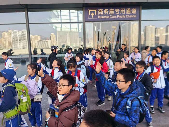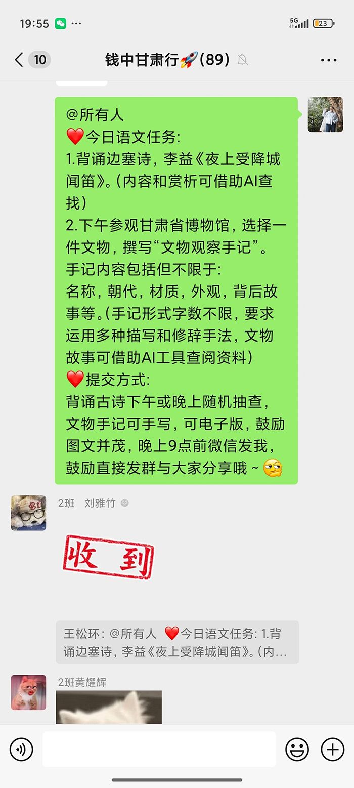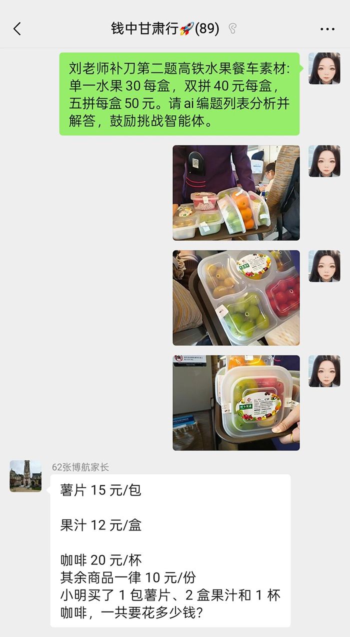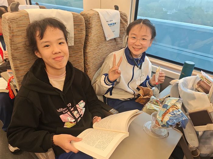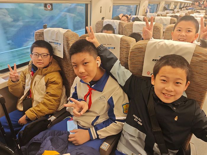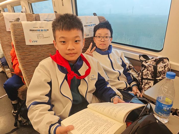 伴随着高铁的鸣笛声,研学队伍正式踏上行程。列车上,三位任课教师将课堂搬到高铁上,英语老师发起单词记忆大赛,数学老师和语文老师则鼓励学生利用AI完成各种挑战。