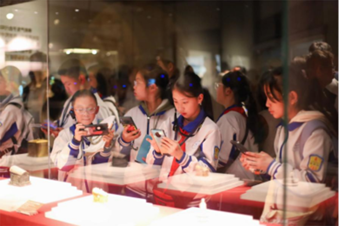 走进“甘肃丝绸之路文明”展厅,在讲解员的引导下,同学们不约而同地将目光投向了镇馆之宝——那件精美的“铜奔马(马踏飞燕)”。“以前只在课本里见过图片,现在亲眼看到实物,才发现它的造型是这么灵动、这么优美,马的姿态、飞鸟的细节都像活了一样!”