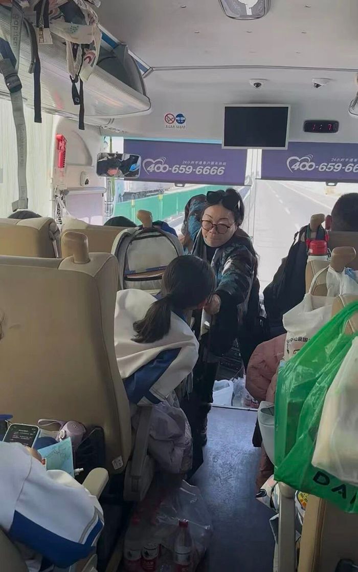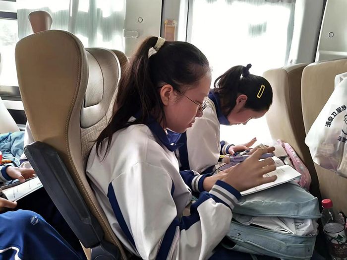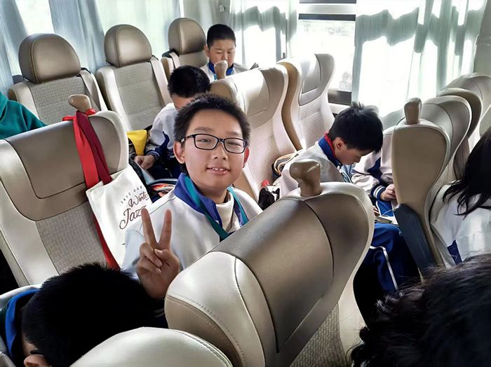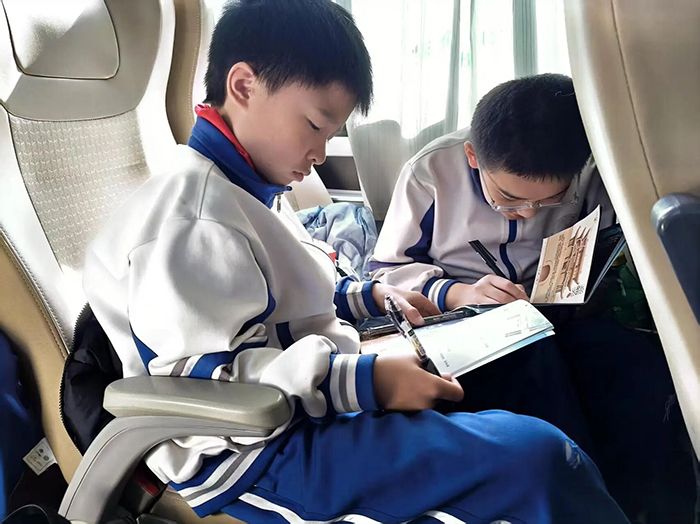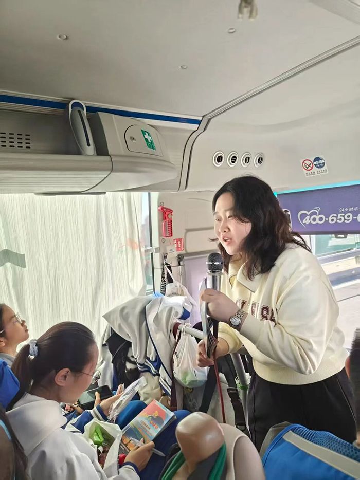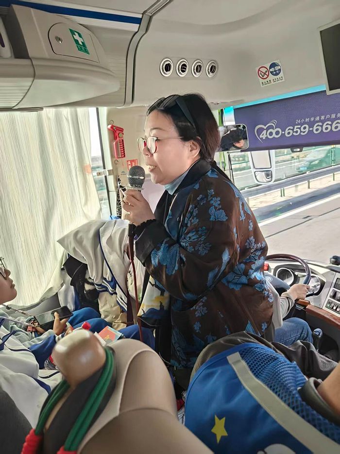 班会前半段,两辆汽车分别由班主任黄老师、王老师主导,围绕研学手册中的学术内容展开讨论与分享。结合研学途中参观的航天展馆、科技基地素材,引导同学们探讨研学手册上的关键问题,鼓励大家主动分享见闻。车厢内虽空间有限,却弥漫着浓厚的研讨氛围,同学们始终认真倾听,每当老师抛出问题,总能看到一只只举起的手,积极回应的声音此起彼伏,让学术分享摆脱了传统课堂的束缚,多了份旅途的鲜活。