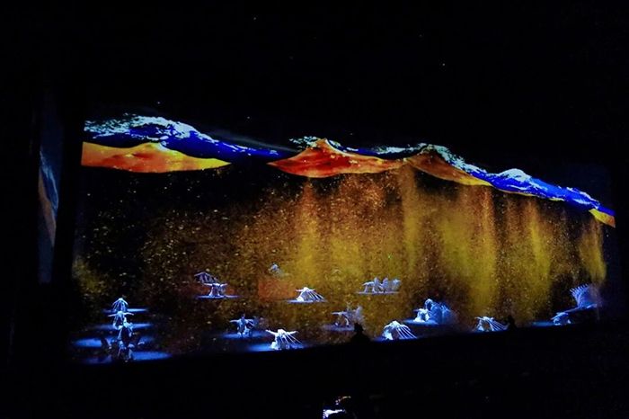 傍晚启航班同学观看情景剧<<又见敦煌>>,演出以“穿越千年”为叙事线索,通过“与历史对话”的独特表现形式,将敦煌壁画、丝路商旅、文化交融等场景生动呈现。演员们在观众身边移步换景,从张骞出使西域的坚定到敦煌工匠的执着,从丝路驼队的喧嚣到文物保护者的坚守,一幕幕场景让同学们仿佛置身历史长河,直观感受敦煌文化的厚重与璀璨。