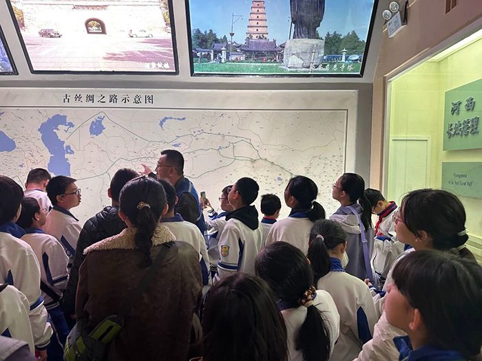 11月2日,启航班学子们走进嘉峪关长城博物馆,在“伟大的长城”“嘉峪关的建造”“嘉峪关与丝绸之路”等展厅中,通过文物陈列、场景复原和多媒体演示,系统了解长城的发展历程与文化内涵。从新石器时代的彩陶,到汉代的简牍,再到明代的兵器甲胄,一件件文物仿佛跨越时空的信使,让同学们直观感受到丝绸之路与长城文化的交融共生。