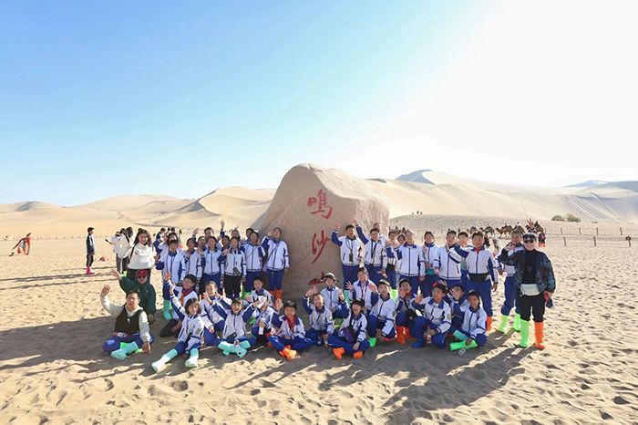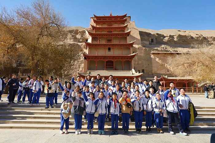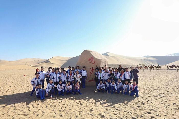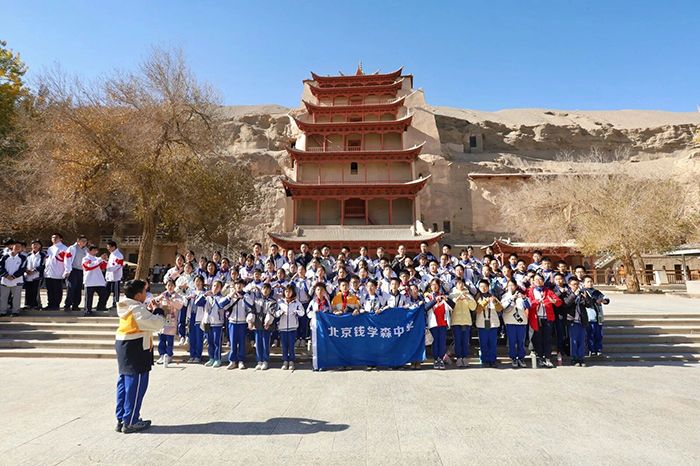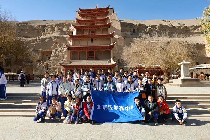 11月3日,北京钱学森中学启航班的同学们走进敦煌,开启了一场兼具文化体验与自然探索的研学之旅。上午,同学们沉浸式体验泥版画制作,随后探访莫高窟感受千年艺术魅力;下午,大家奔赴鸣沙山月牙泉,在大漠风光中领略自然奇迹。