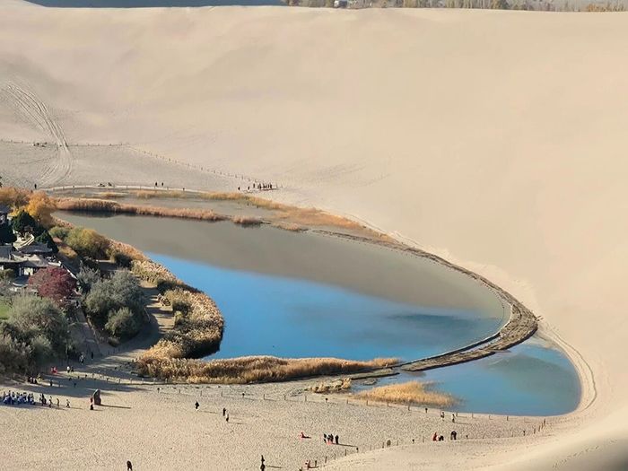 踏入鸣沙山,我才真正懂得了“坚韧”的含义。每一粒沙子都在诉说岁月的故事,攀登虽然辛苦,但山顶的风景让一切汗水都值得。而就在这片金色沙海之中,竟然怀抱着一弯清冽的月牙泉!它们相依相守千年,这动人的约定,让我看到了大自然最神奇的智慧。