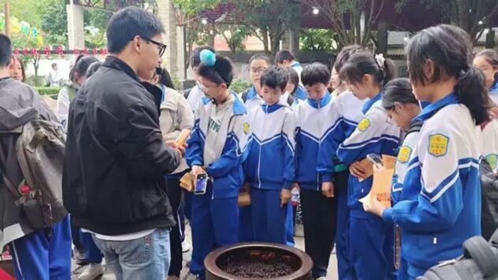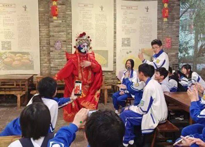 晚饭前的川剧变脸展演将氛围推向高潮,变脸大师灵动的身法、瞬间切换的脸谱,引得同学们阵阵惊呼,近距离的互动教学更让大家亲身感受非遗艺术的神奇。