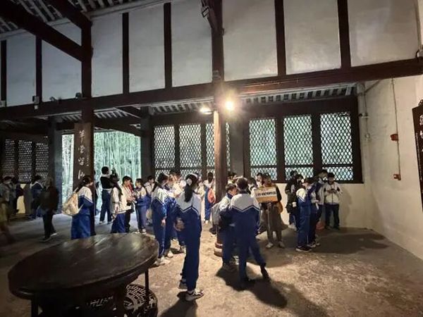 暮色四合时,同学们走进宽窄巷子的市井画卷。青石板路蜿蜒向前,两侧灰砖青瓦老宅院透着川西民居的韵味。糖画艺人以勺为笔、以糖为墨,勾勒出灵动图案;盖碗茶的清香从茶馆飘出,老茶客听着川剧锣鼓,慢品时光。同学们品尝着地道小吃,聆听巷弄往事,在这里读懂了一座城市“一张一弛,从容自在”的生活哲学。